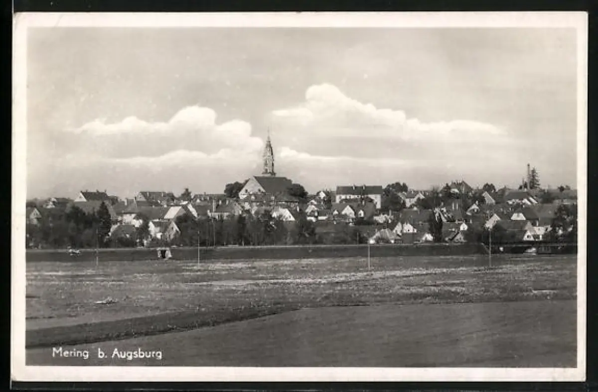 AK Mering b. Augsburg, Ortsansicht mit Kirche
