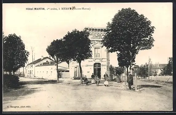 AK Merrey /Haute-Marne, Hôtel Martin et scène de rue animée