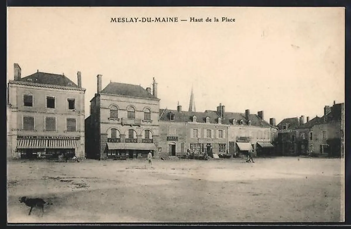 AK Meslay-du-Maine, Haut de la Place avec bâtiments et place centrale