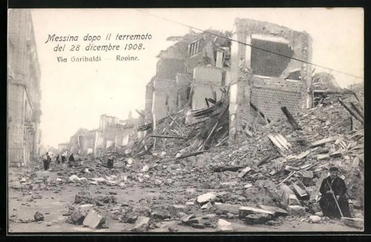 AK Messina, Via Garibaldi, Rovine, Erdbeben 1908