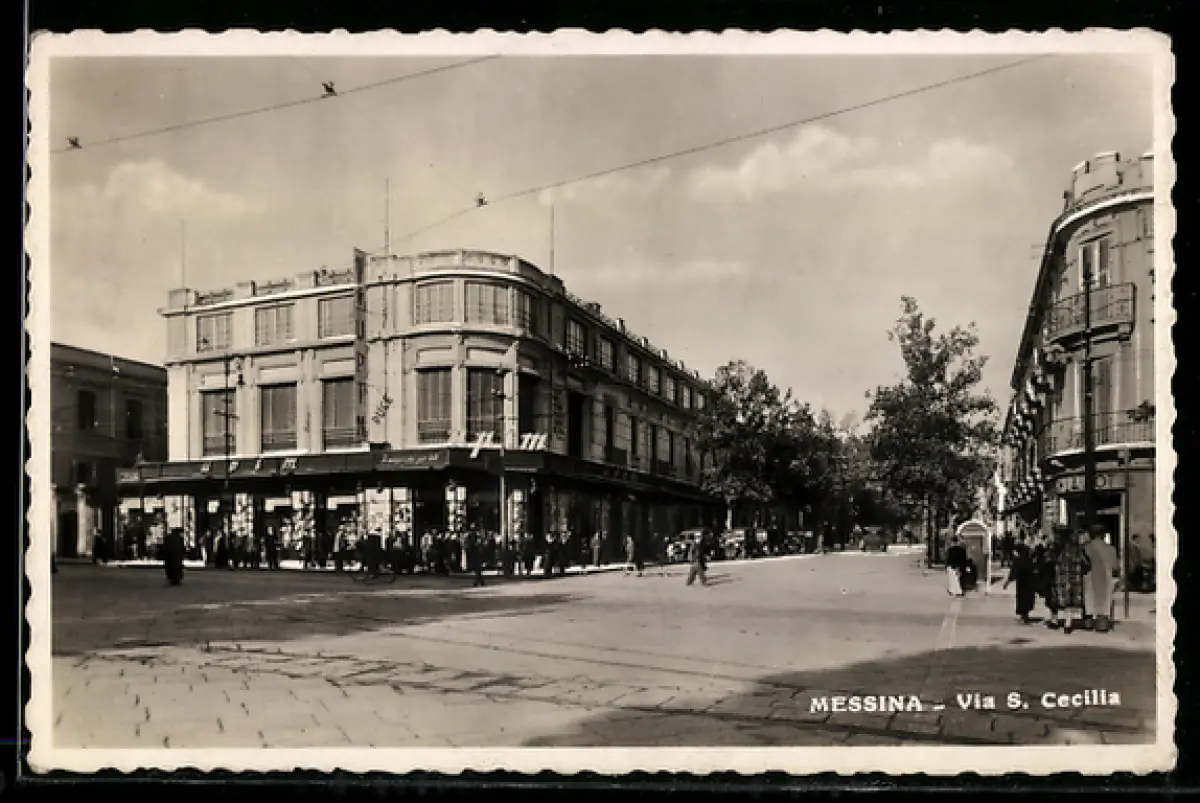 AK Messina, Via S. Cecilia con edifici e passanti