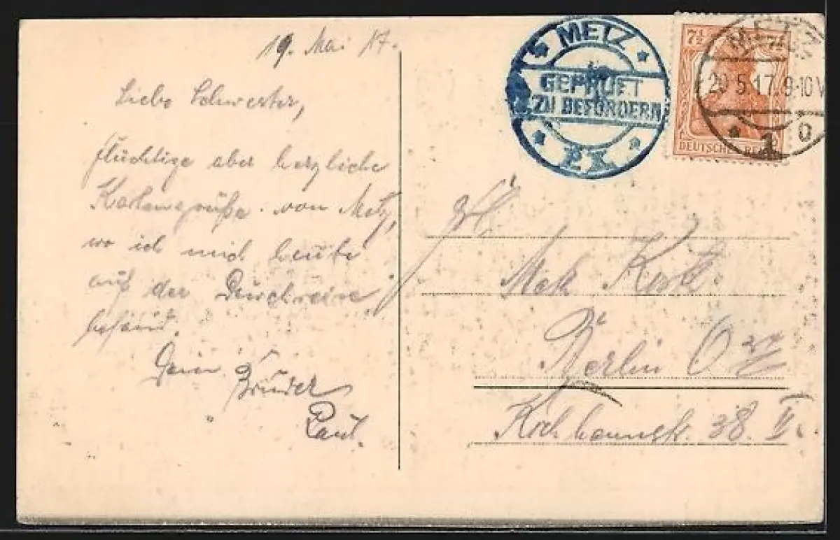 alte Ansichtskarte, gelaufen 1917, Stempelspur, guter Zustand
