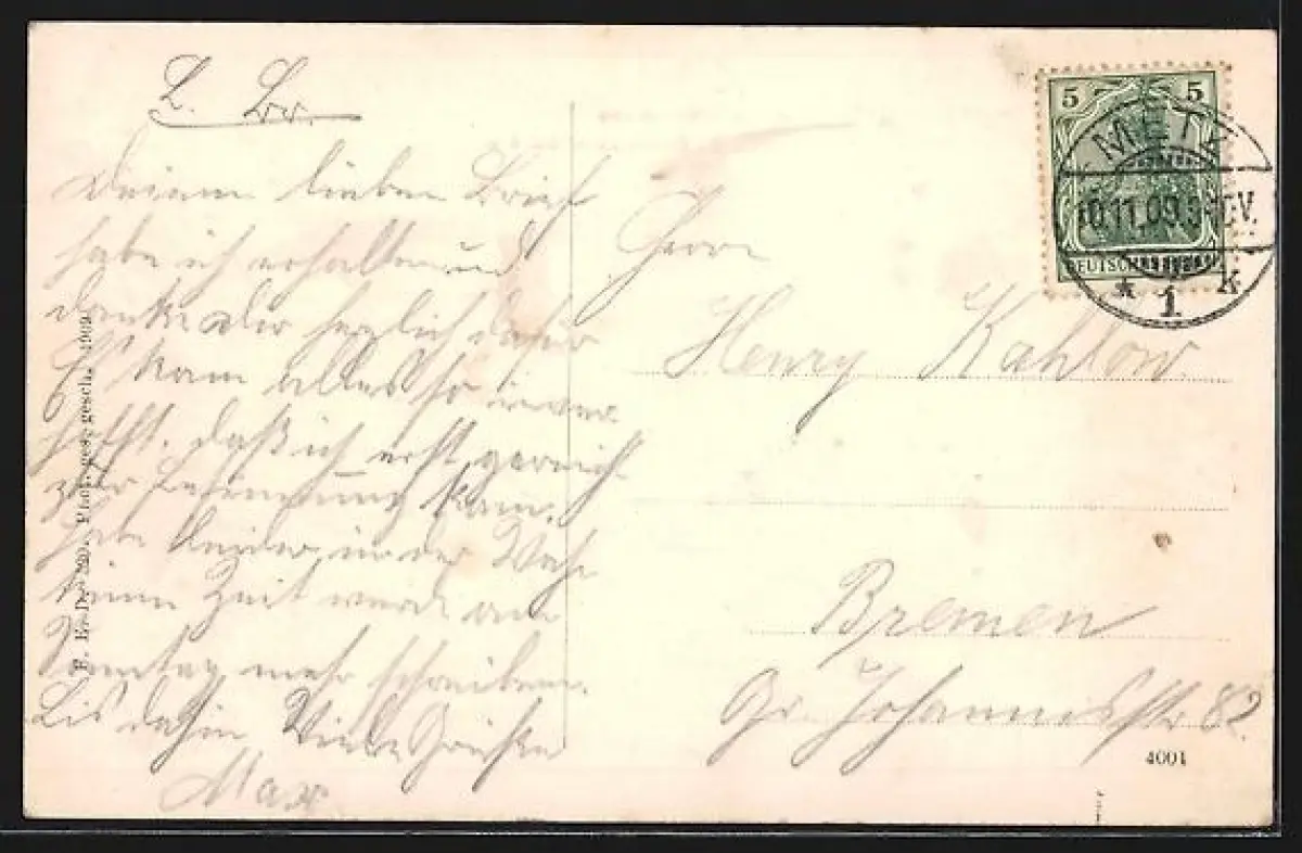 alte Ansichtskarte, gelaufen 1909, guter Zustand