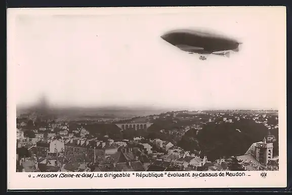 AK Meudon, Le dirigeable Republique ecolant au dessus