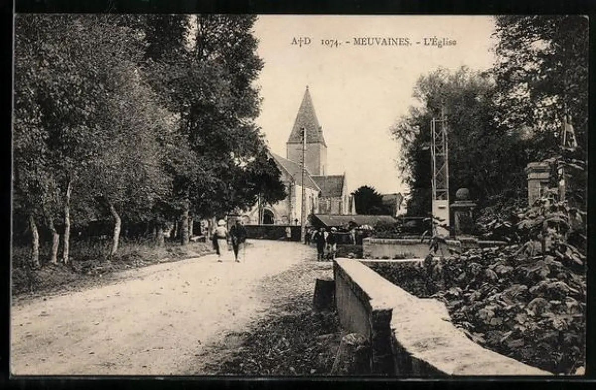 AK Meuvaines, L`Église et chemin bordé d`arbres