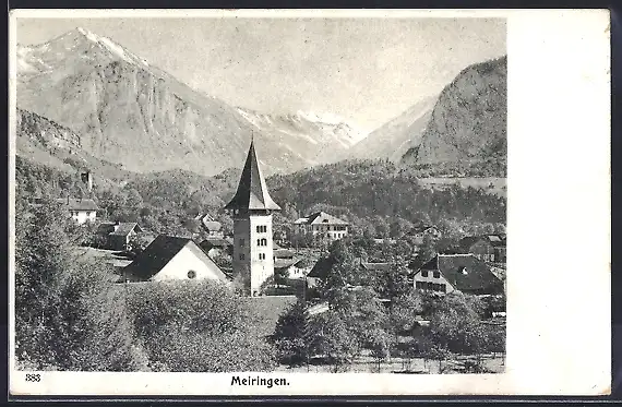 AK Meyringen, Ortsansicht mit Kirche und Talblick