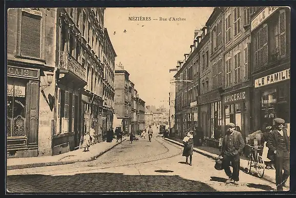 AK Mézières, Rue d`Arches, Strassenpartie mit Strassenbahn