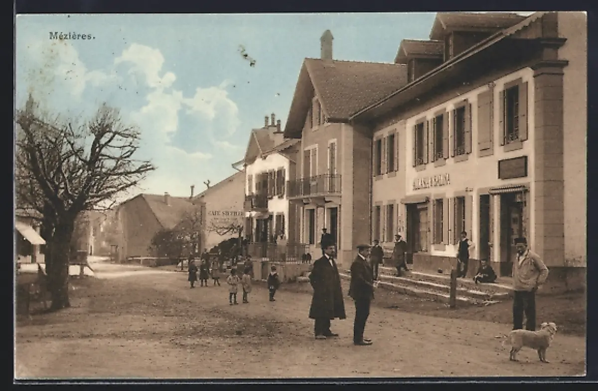 AK Mézieres /VD, Cafe Stettler und Allasia & Salina