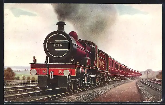 AK Midland Railway, Down Scotch Corridor Express near Cricklewood, Compound No. 1032, englische Eisenbahn