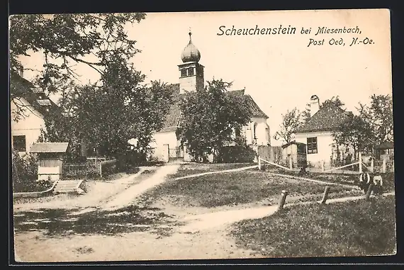 AK Miesenbach, Scheuchenstein, Ortspartie mit Kirche