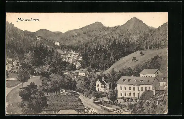 AK Miesenbach, Teilansicht m. Johann Schramböck`s Gasthof