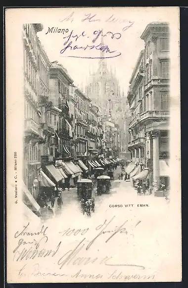 AK Milano, Corso Vitt. Emauele mit Pferdebahn