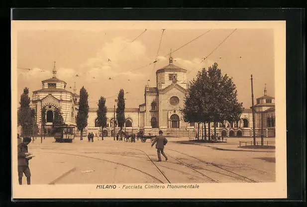 AK Milano, Facciata Cimitero Monumentale, Strassenbahn