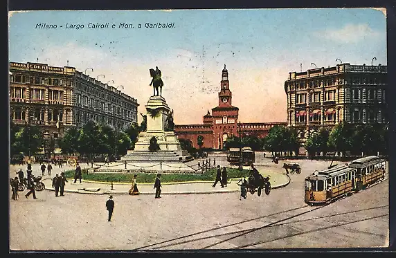 AK Milano, Largo Cairoli e Mon. a. Garibaldi, Tramway, Strassenbahn