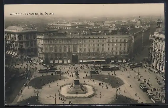 AK Milano, Panorama dal Duomo, Strassenbahn