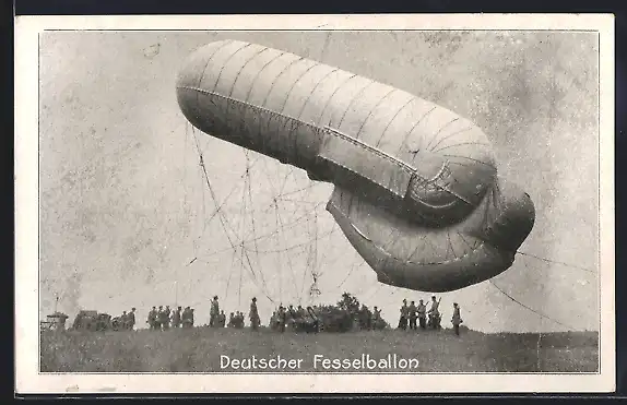 AK Militärischer Fessel-Ballon vor dem Aufstieg