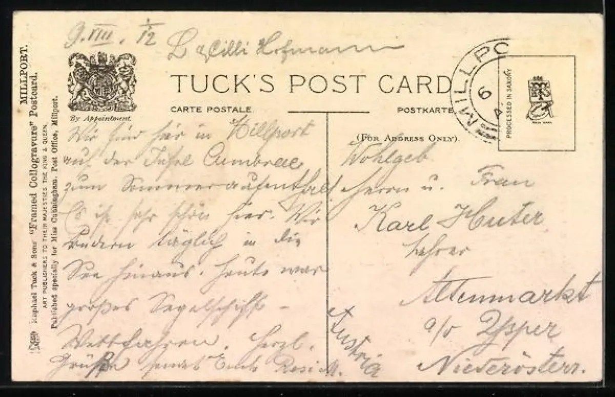 alte Ansichtskarte, ungelaufen, Briefmarke entfernt, guter Zustand
