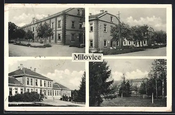 AK Milowitz / Milovice, Ansicht vom Rathaus, Strassenpartie