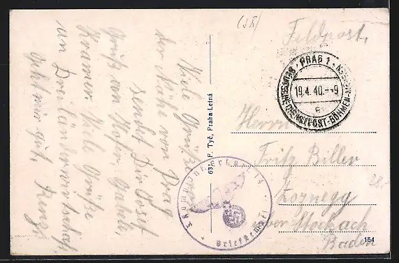 alte Ansichtskarte, gelaufen 1940, Einriss und Bugspur li. oben