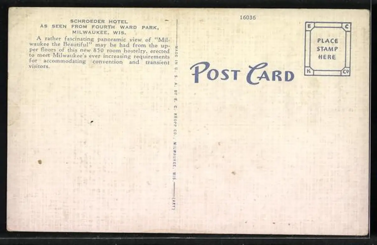 AK Milwaukee, WI, Schroeder Hotel as seen from the Fourth Ward Park