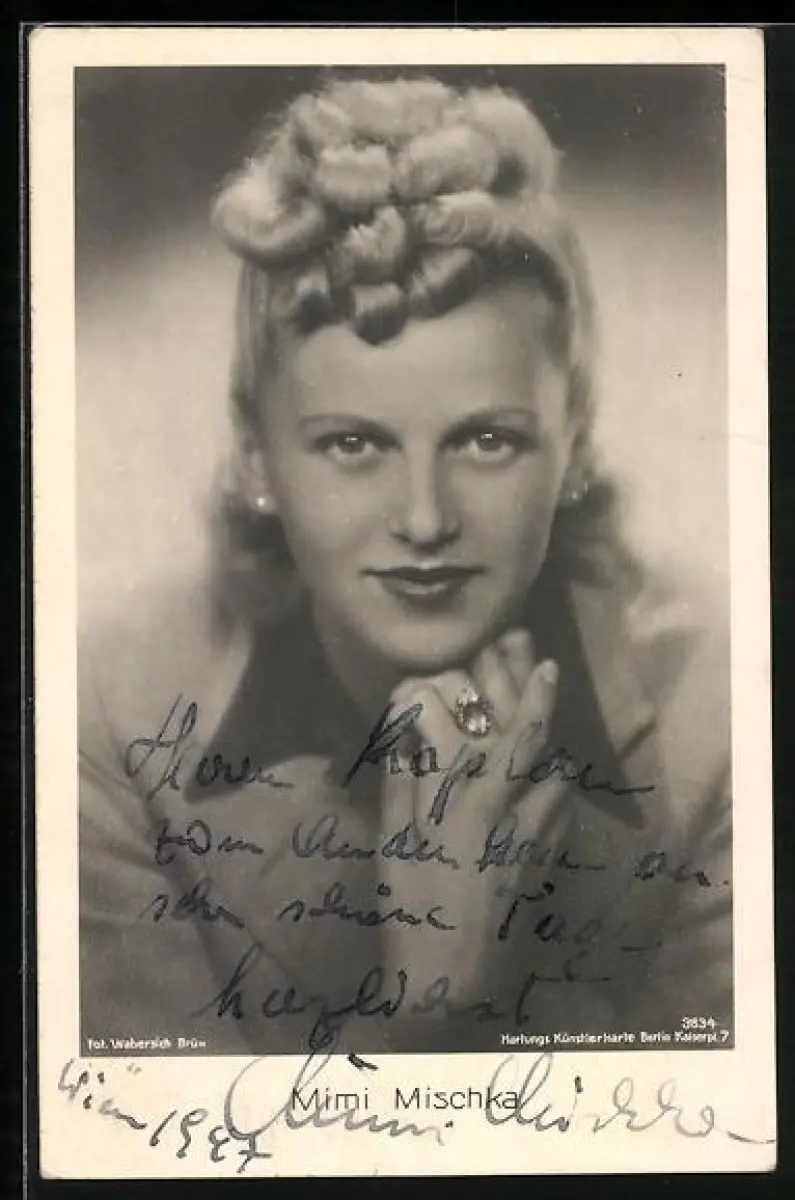 AK Mimi Mischka, Portrait, Autograph, 1947
