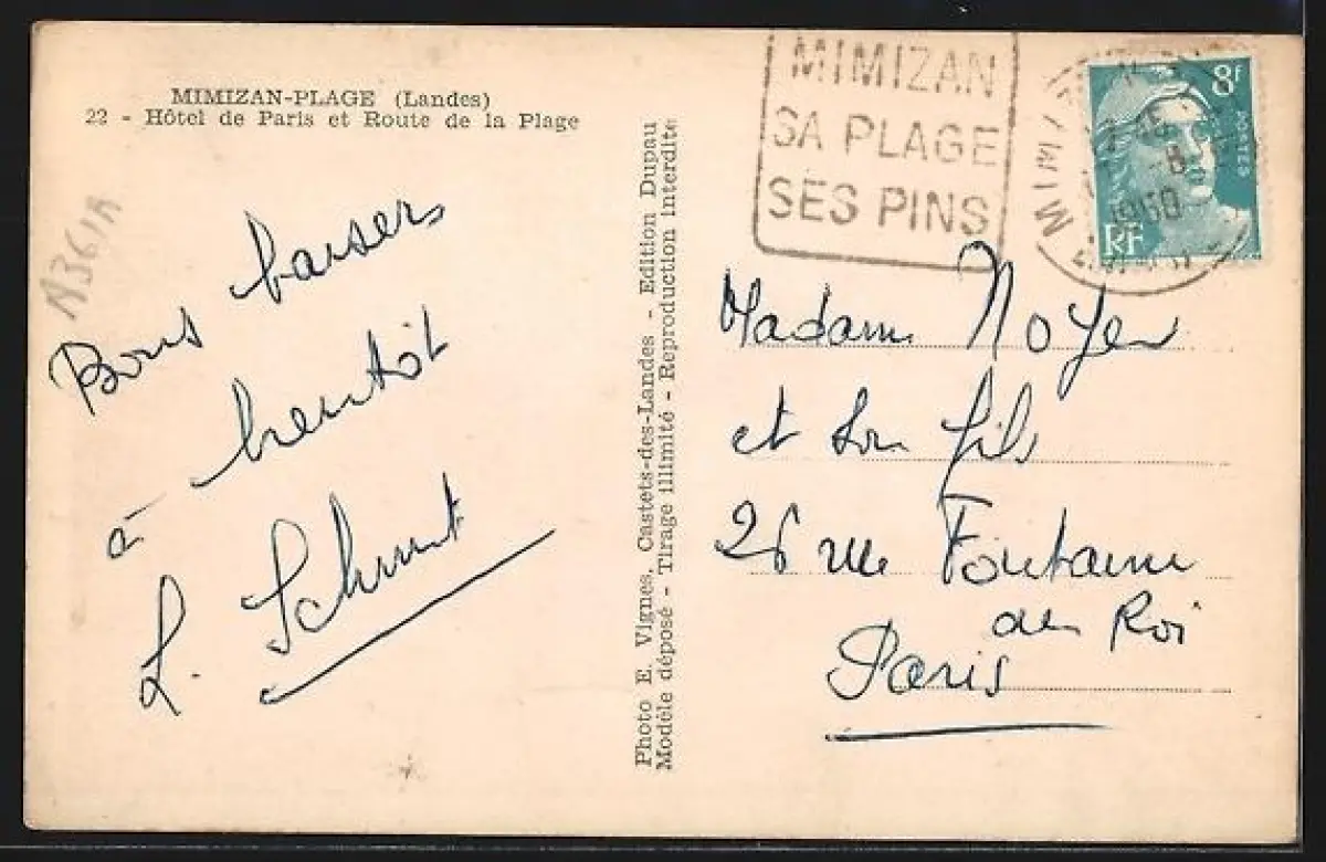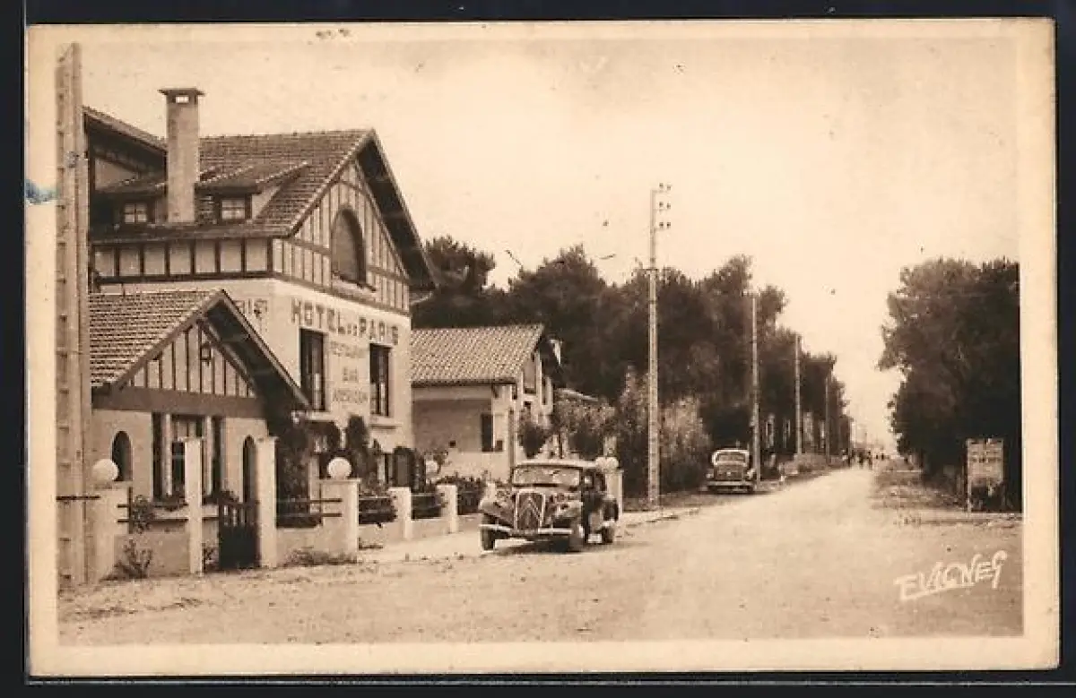 AK Mimizan-Plage /Landes, Hôtel de Paris et Route de la Plage
