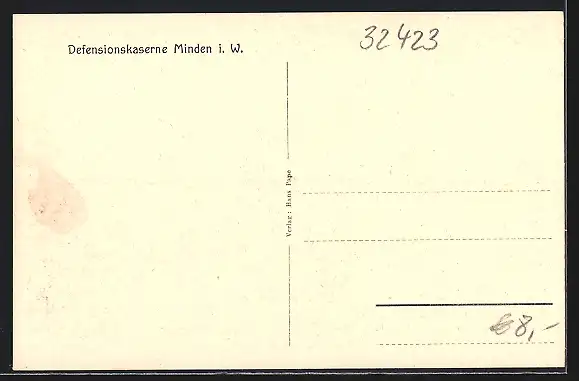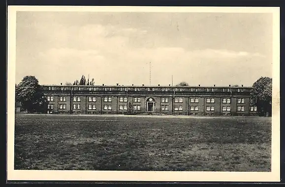 AK Minden i. W., Defensionskaserne - Gebäudeansicht vom Feld aus