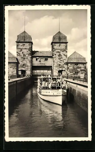AK Minden i. W., Fahrgastmotortschiff Castor in der Schachtschleuse