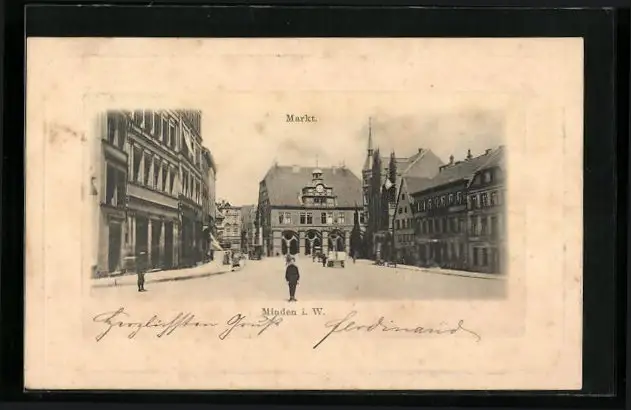 AK Minden i. W., Markt mit Kirche
