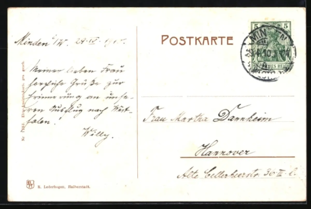 alte Ansichtskarte, gelaufen 1910, guter Zustand