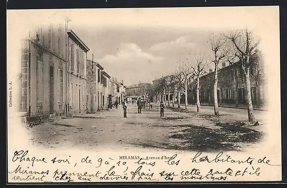 AK Miramas, Avenue d`Istres avec passants et arbres en hiver