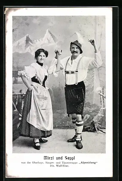 AK Mirzl und Seppl von der Obberbayr. Sänger- und Tänzertruppe Alpenklang