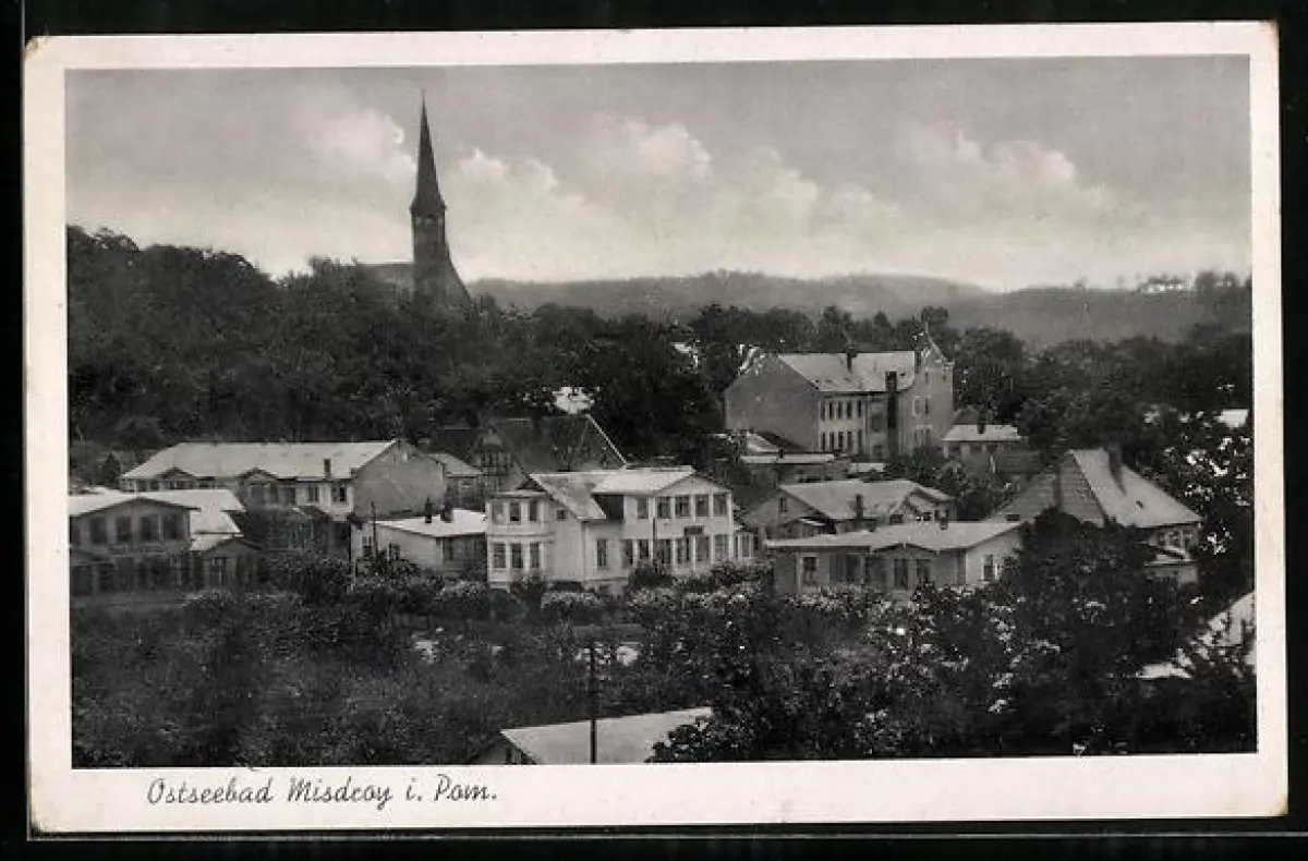 AK Misdroy, Teilansicht mit Kirchturm