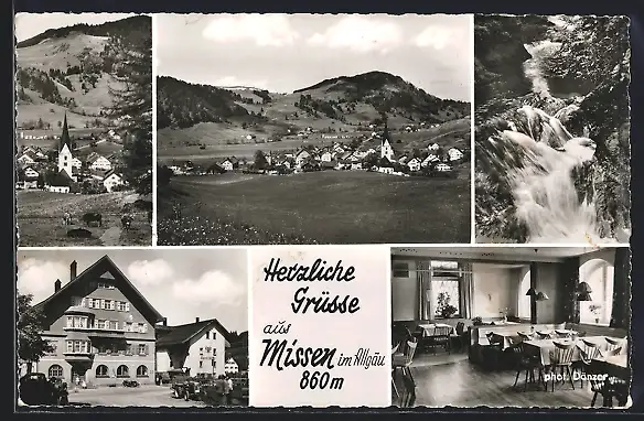 AK Missen im Allgäu, Brauerei-Gasthof Schäffler Albrecht, Gesamtansicht, Wasserfall
