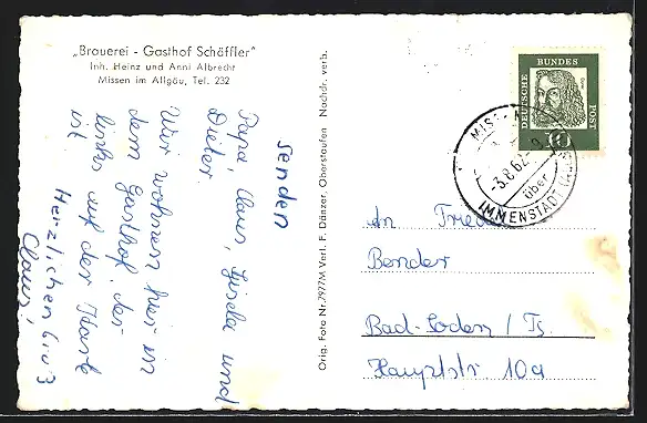 alte Ansichtskarte, gelaufen 1962, Einriss oben li., guter Zustand