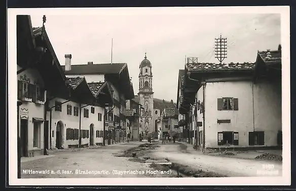 AK Mittenwald, Obere Marktstrasse mit Blick zur Kirche