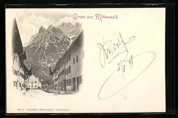 AK Mittenwald, Strassenpartie und Gebirgspanorama