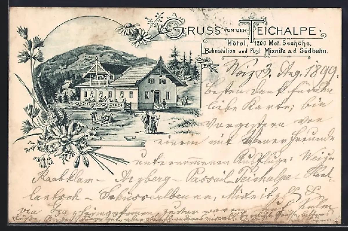 AK Mixnitz a. d. Südbahn, Hotel Teichalpe gegen die Berge