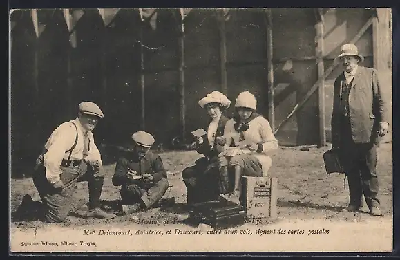 AK Mme Driancourt, Aviatrice et Daucourt signent des cartes postales