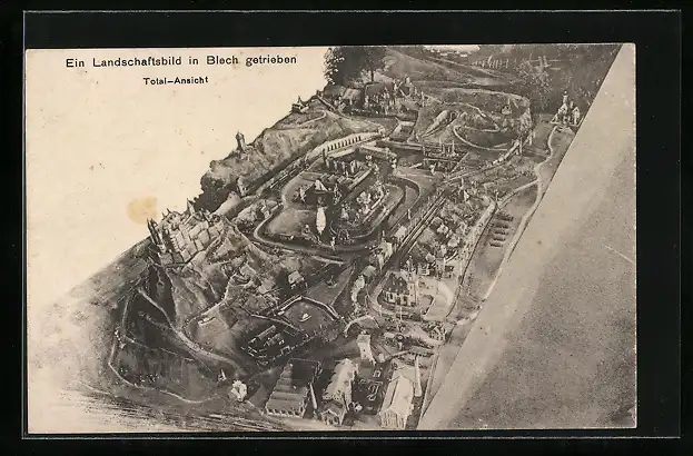 AK Modellbau, Teilansicht des in Blech getriebenen Landschaftsbildes, Totalansicht