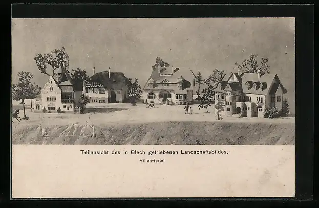 AK Modellbau, Teilansicht des in Blech getriebenen Landschaftsbildes, Villenviertel