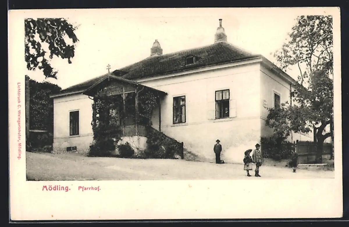 AK Mödling, Strassenpartie am Pfarrhof