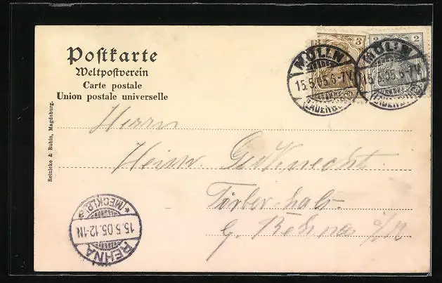 alte Ansichtskarte, gelaufen 1905, Stempelspur, guter Zustand