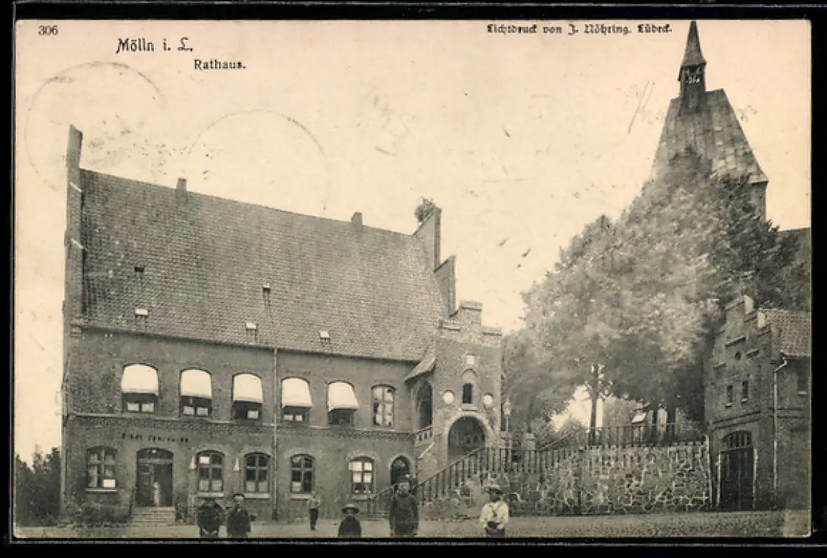 AK Mölln i. L., Rathaus mit Strassenpartie