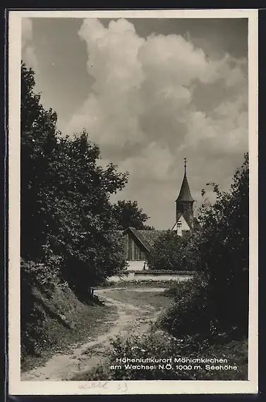 AK Mönichkirchen, Strassenpartie mit Kirche