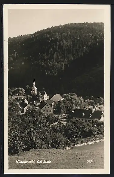 AK Mönichwald /Ost-Stmk., Ortsansicht mit Kirche
