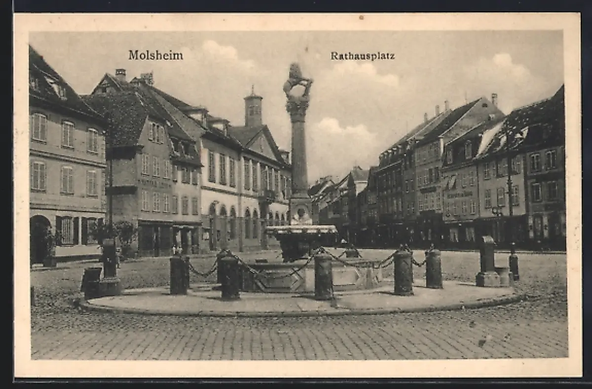 AK Molsheim, Rathausplatz mit Denkmal