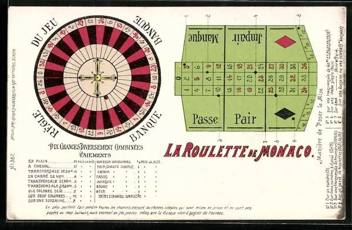 AK Monaco, La Roulette, Roulettetisch- und scheibe
