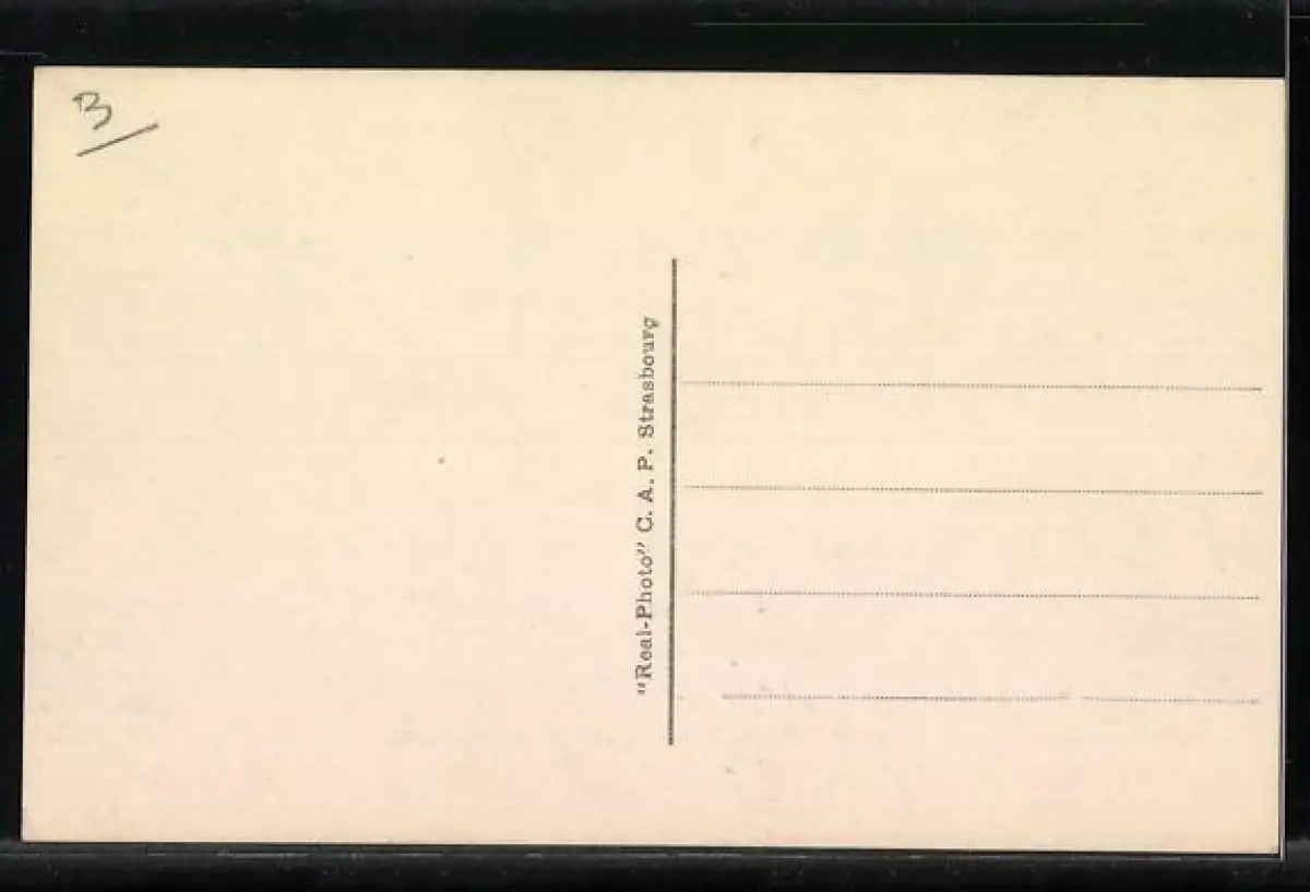 Personenbezogene Daten auf der Rückseite der Karte wurden durch blauen Textmarker unkenntlich gemacht. Die blauen Stellen sind auf die Vorderseite durchgeweicht und wirken sich negativ auf das Postkartenfoto aus