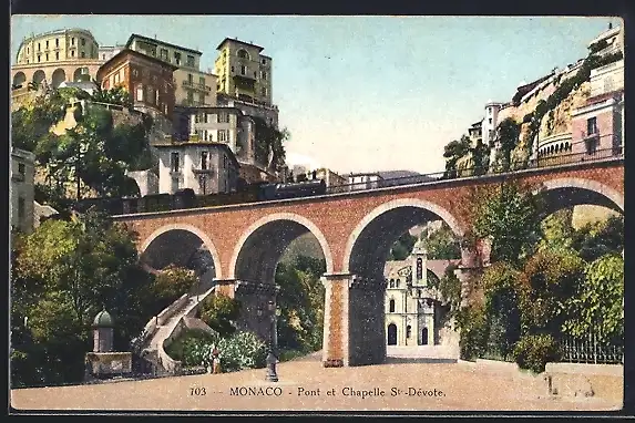 AK Monaco, Pont et Chapelle St-Devote mit Eisenbahn